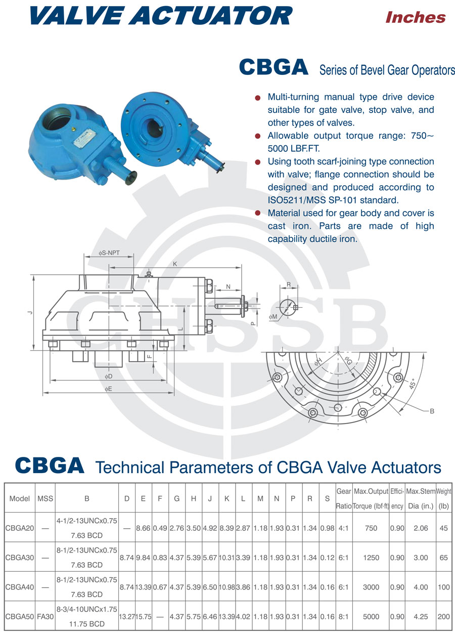 CBG(V)系列錐齒輪驅(qū)動器:該產(chǎn)品是一種全回轉(zhuǎn)型驅(qū)動裝置,適用于閘閥、截至閥等閥板做直線運動的閥門。